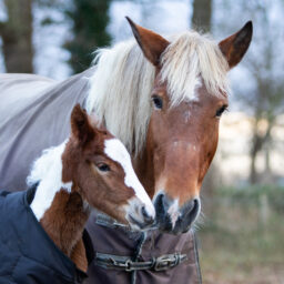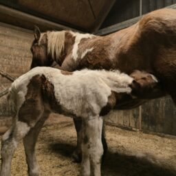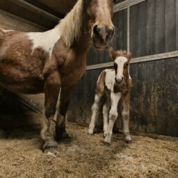 “Het veulen is nieuwsgierig en aanhankelijk, en Ziggy ontpopt zich tot een zorgzame moeder. We hopen dat haar dochter het lieve en geduldige karakter van Ziggy heeft, wat haar tot een ideaal paard voor de stichting zou maken.” kan een vrijwilliger die op kraamvisite geweest is vertellen. Over de vader van het veulen is helaas niets bekend, maar de bouw van het veulen verraadt wel dat haar vader een stevig paard moet zijn.
