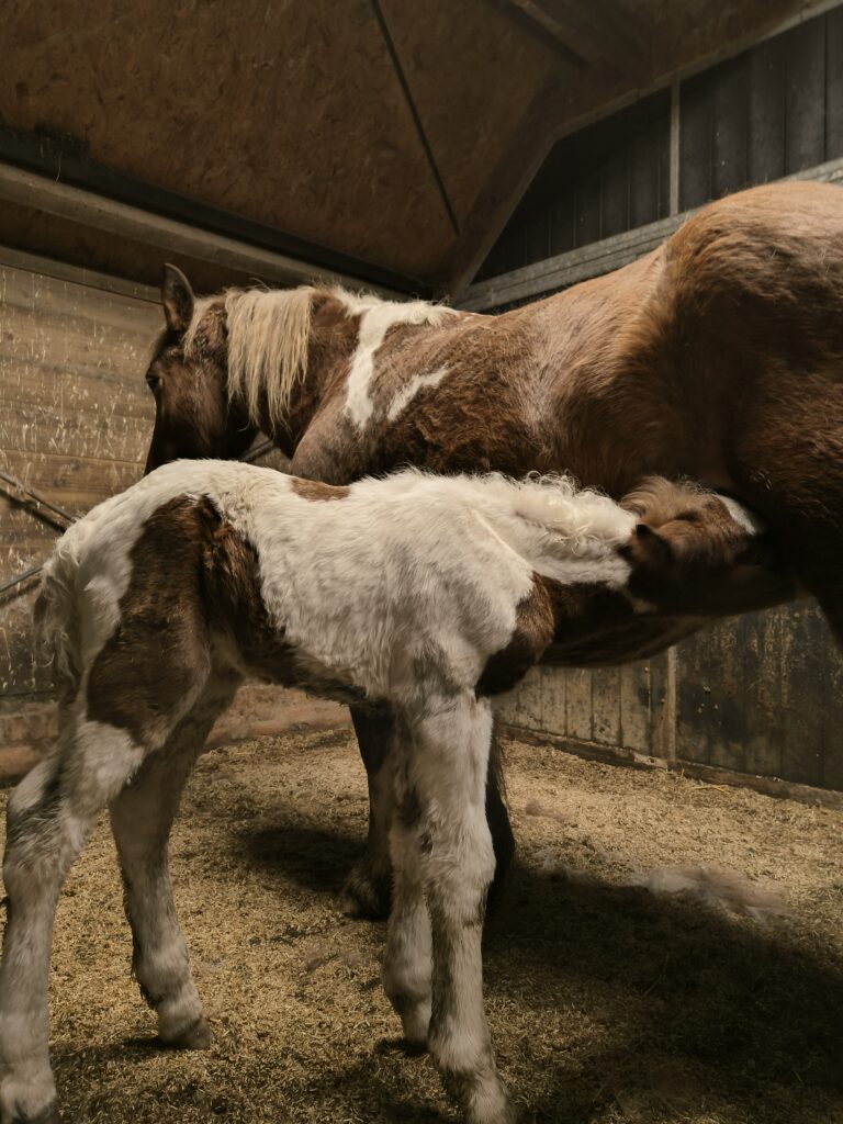 Op dinsdag 7 januari werd een gezond merrieveulen geboren, de dochter van het paard Ziggy. Zowel moeder als dochter maken het uitstekend! Beide verblijven nog een tijdje bij instructrice Nicolette, waar ze in alle rust kunnen aansterken.