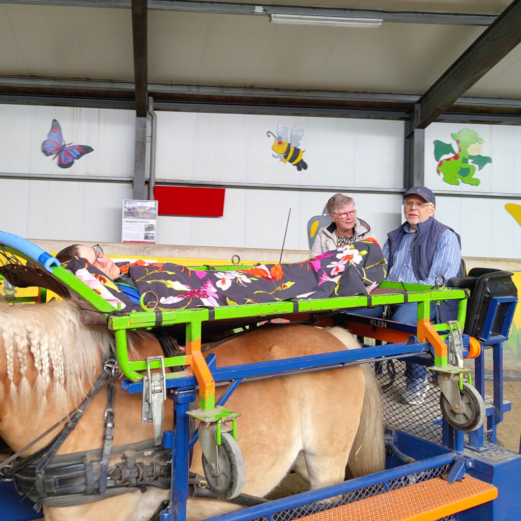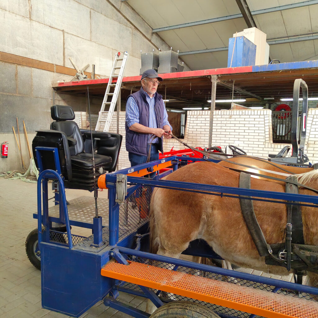“Op vrijdagmiddag is het een gezellig team van vrijwilligers, menners en medewerkers. Daarnaast los ik sinds kort op maandag de ochtendploeg af met het huidbedrijden en doe ik de menkar er nog achteraan. Ik vind het erg leuk om te doen, het is ook altijd leuk als er een begeleider mee op de bok rijdt.